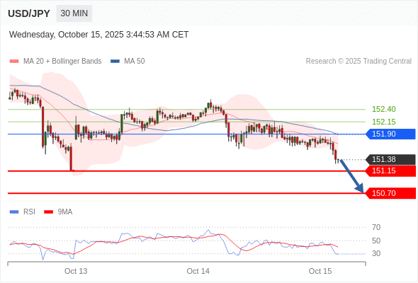 在 151.90 之下,看跌,目标价位为 151.15 ,然后为 150.70 。