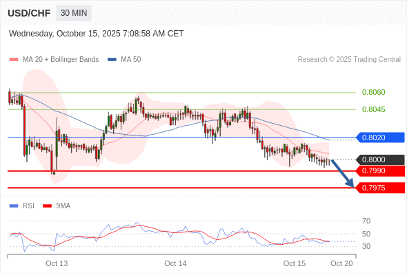 美元/瑞郎 当日内: 目标位为0.7975。