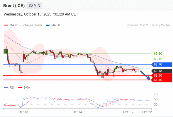布伦特原油 (ICE) (Z5) 当日内: 短期关键阻力位在62.70。