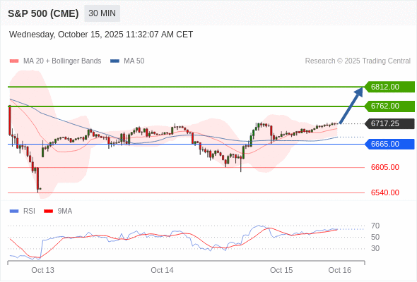 在 6665.00 之上,看涨,目标价位为 6762.00 ,然后为 6812.00 。