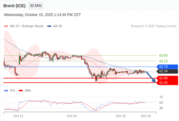 在 62.70 之下,看跌,目标价位为 61.80 ,然后为 61.45 。