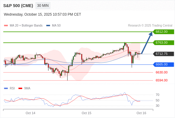 在 6665.00 之上,看涨,目标价位为 6763.00 ,然后为 6812.00 。