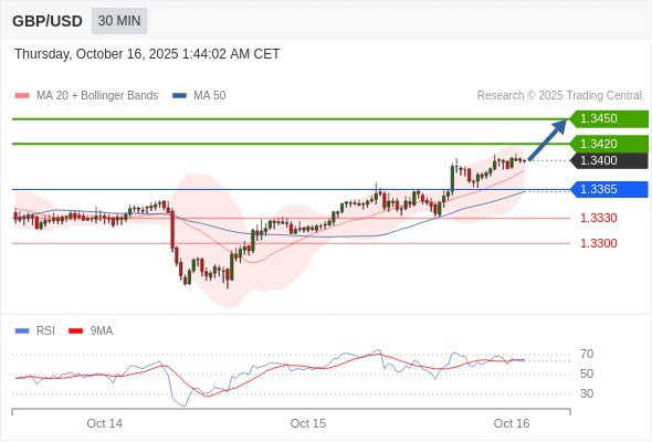 在 1.3365 之上,看涨,目标价位为 1.3420 ,然后为 1.3450 。