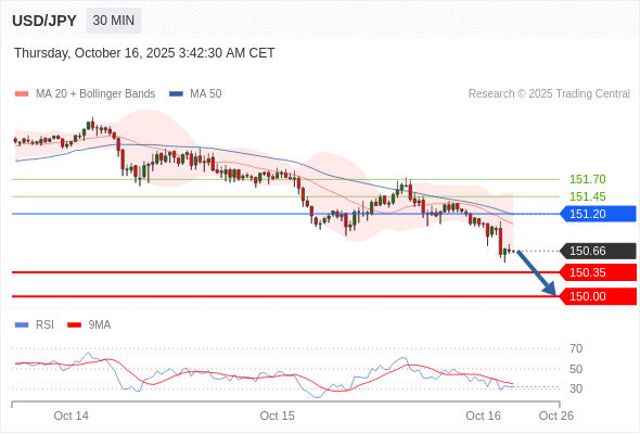 在 151.20 之下,看跌,目标价位为 150.35 ,然后为 150.00 。