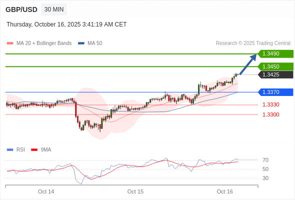 在 1.3370 之上,看涨,目标价位为 1.3450 ,然后为 1.3490 。