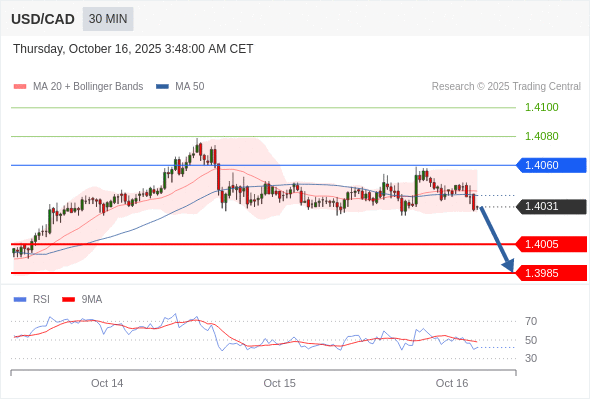 在 1.4060 之下,看跌,目标价位为 1.4005 ,然后为 1.3985 。