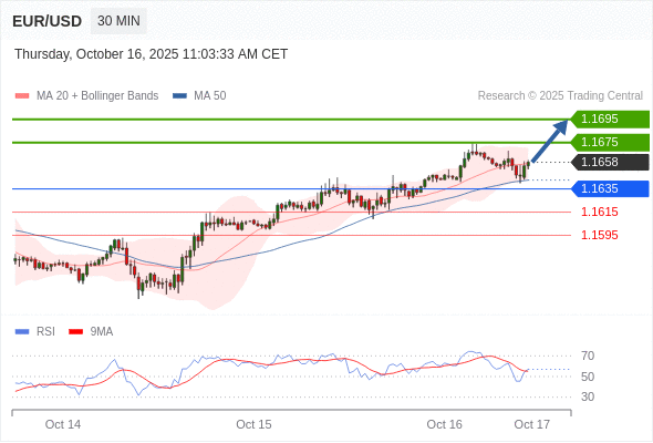 在 1.1635 之上,看涨,目标价位为 1.1675 ,然后为 1.1695 。