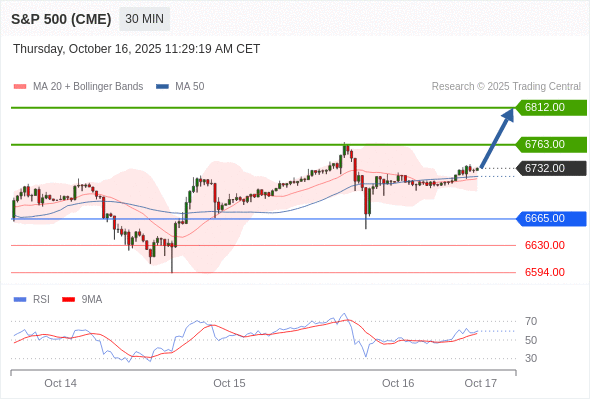 在 6665.00 之上,看涨,目标价位为 6763.00 ,然后为 6812.00 。