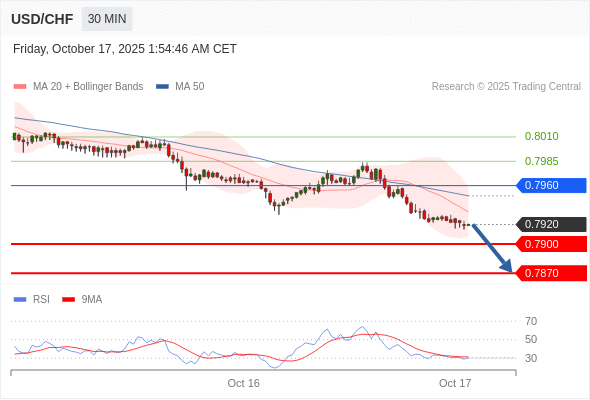 交易策略: 在 0.7960 之下,看跌,目标价位为 0.7900 ,然后为 0.7870 。