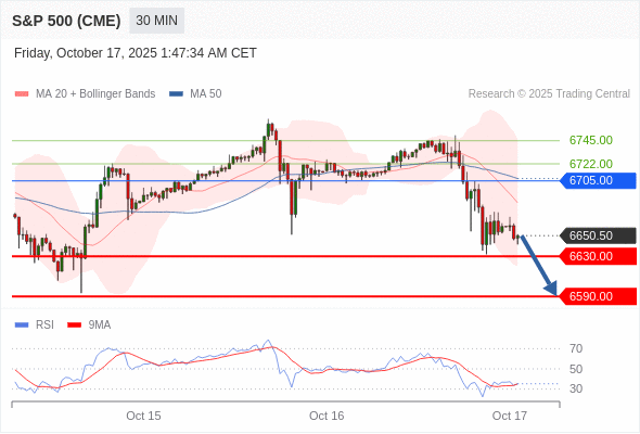 交易策略: 在 6705.00 之下,看跌,目标价位为 6630.00 ,然后为 6590.00 。