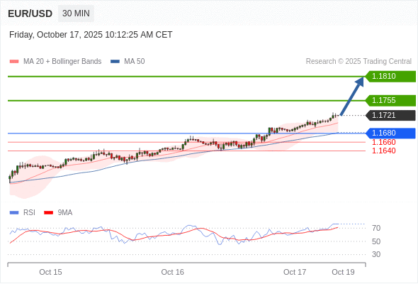 在 1.1680 之上,看涨,目标价位为 1.1755 ,然后为 1.1810 。