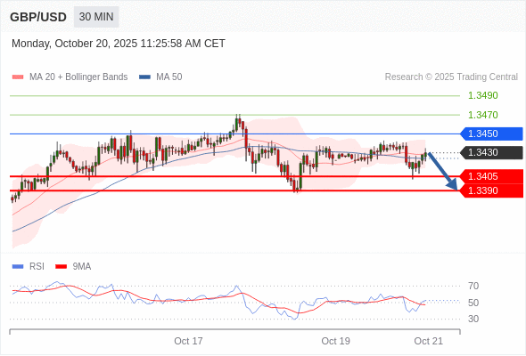 在 1.3450 之下,看跌,目标价位为 1.3405 ,然后为 1.3390 。