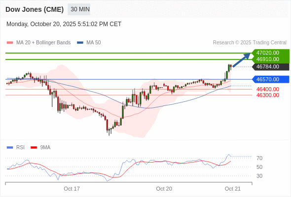 在 46570.00 之上,看涨,目标价位为 46910.00 ,然后为 47020.00 。