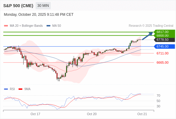 在 6745.00 之上,看涨,目标价位为 6800.00 ,然后为 6817.00 。