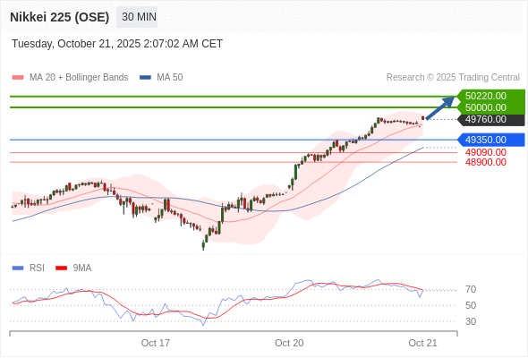 在 49350.00 之上,看涨,目标价位为 50000.00 ,然后为 50220.00 。