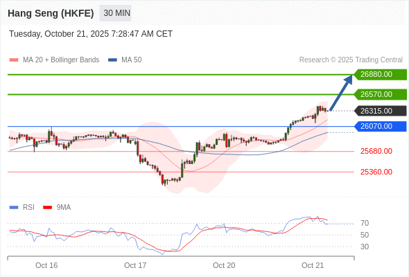 在 26070.00 之上,看涨,目标价位为 26570.00 ,然后为 26880.00 。