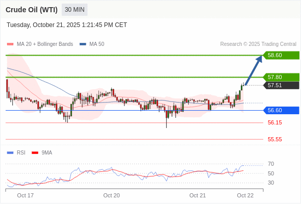 在 56.60 之上,看涨,目标价位为 57.80 ,然后为 58.60 。