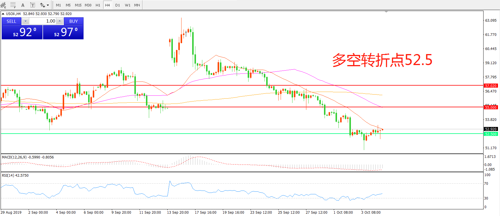多空转折点:52.50