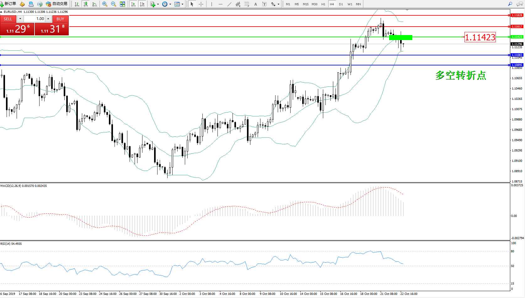 交易策略:1.11423下方看跌,目标1.11083、1.10895