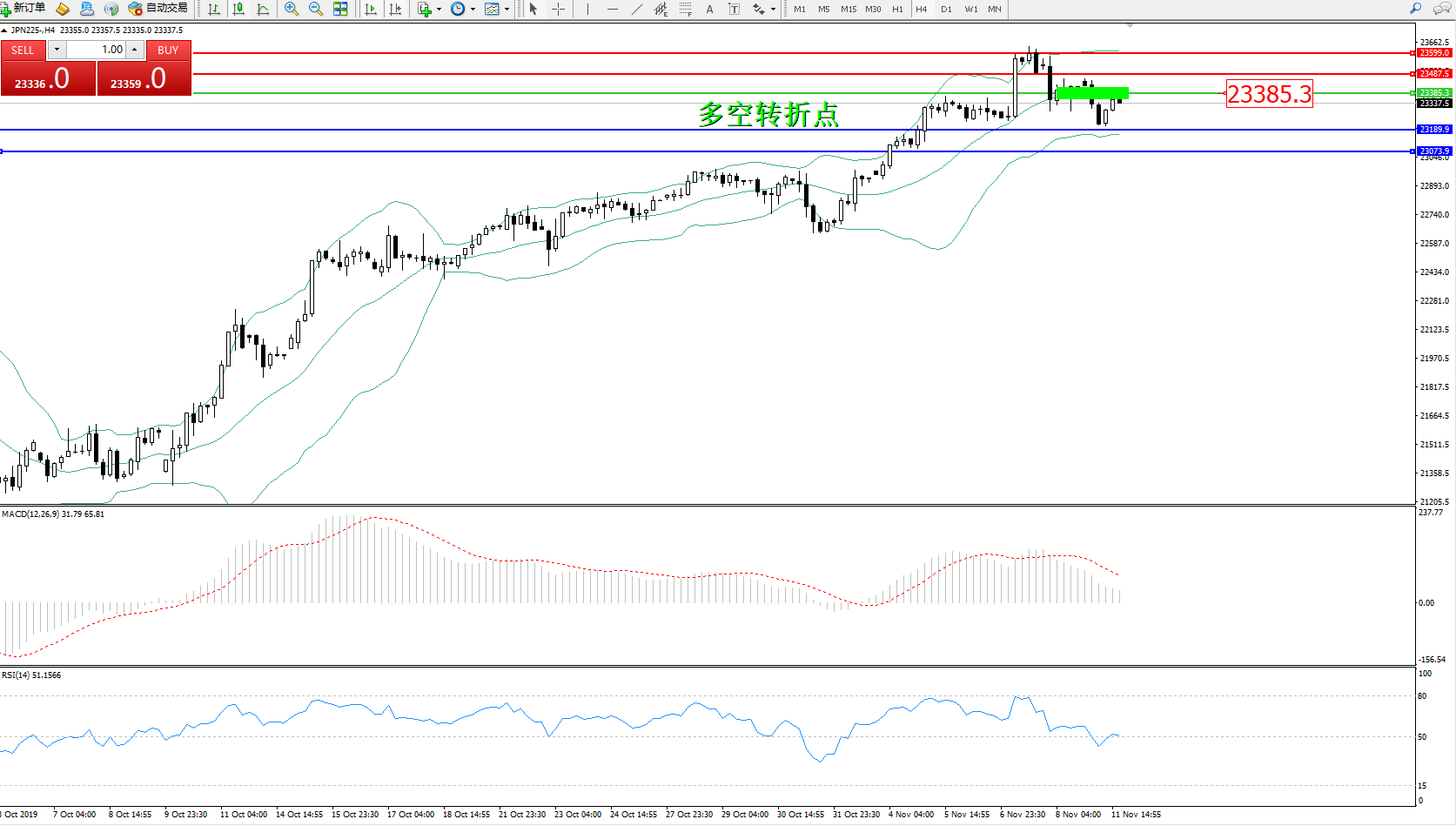 日经225指数11月11日(周一)收盘下跌54.87点,跌幅0.23%,报23337.00点。日本央行行长黑田东彦非常关注如何提高收益率曲线的陡峭程度,这可能会加快日债基准收益率升至零的速度。此前日本央行十月份政策会议的意见摘要显示有关额外刺激措施的争论正在升温,表明日本央行可能在看到经济或通胀进一步的恶化之后就会采取额外行动。随着全球国债收益率的攀升,8月份全球负收益率债券总额自17万亿美元减少至了12万亿,预计日本十年期国债会成为下一个脱离负收益率国债阵营的品种。