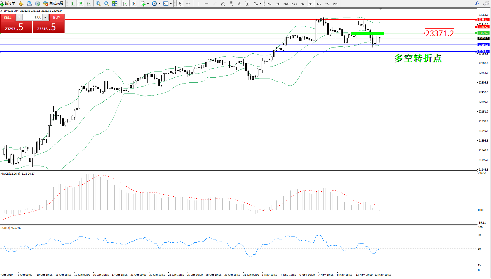 交易策略:23371下方看跌,目标23189、23083