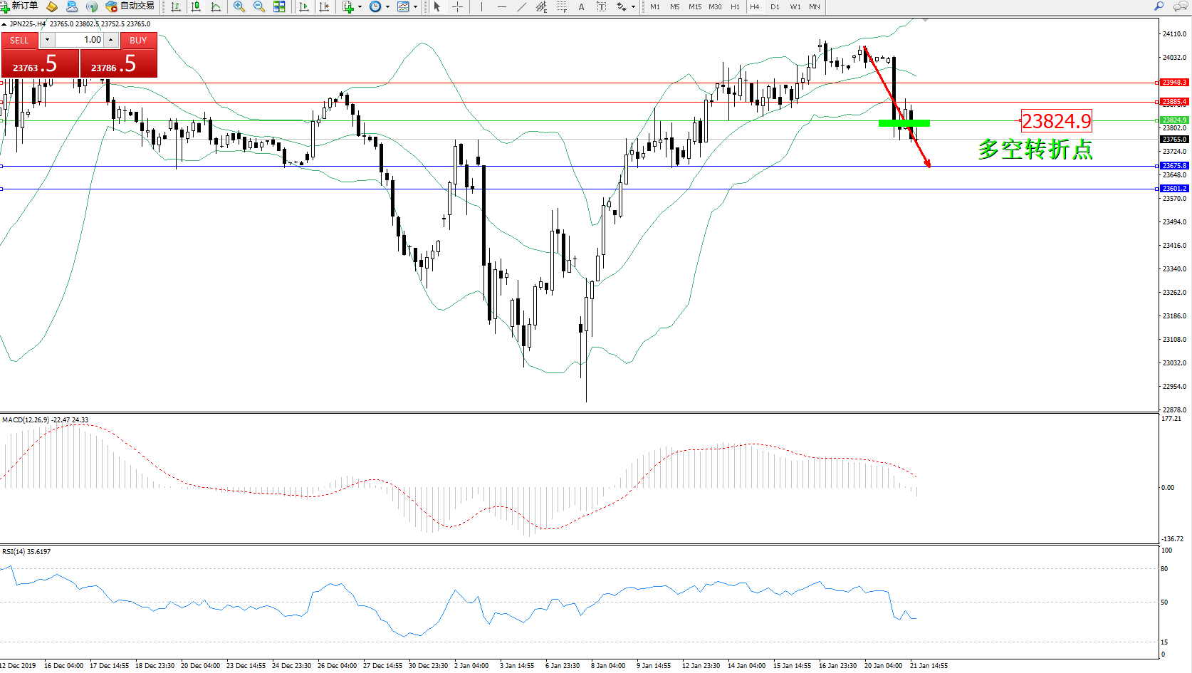 交易策略:23824下方看跌,目标23675、23601