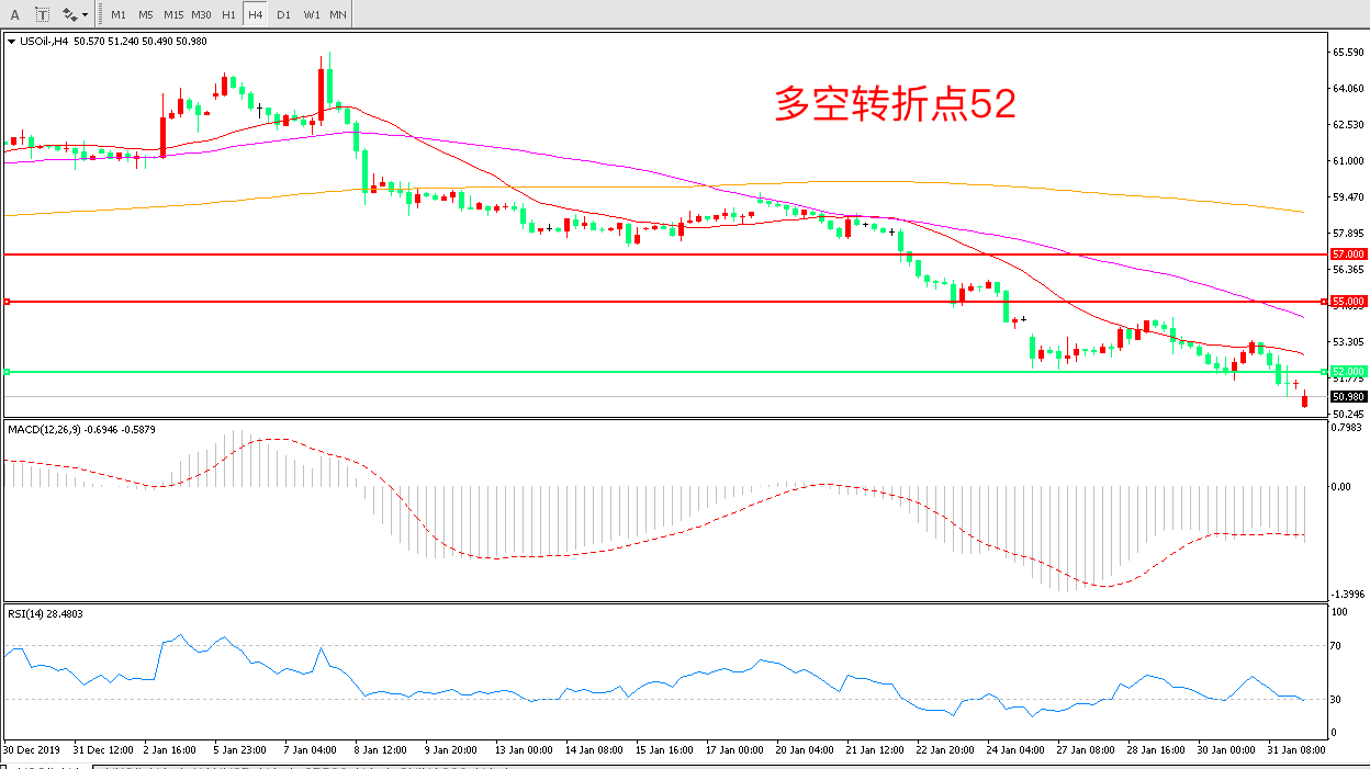 交易策略:在52.00之下看跌,目标49.00 45.00