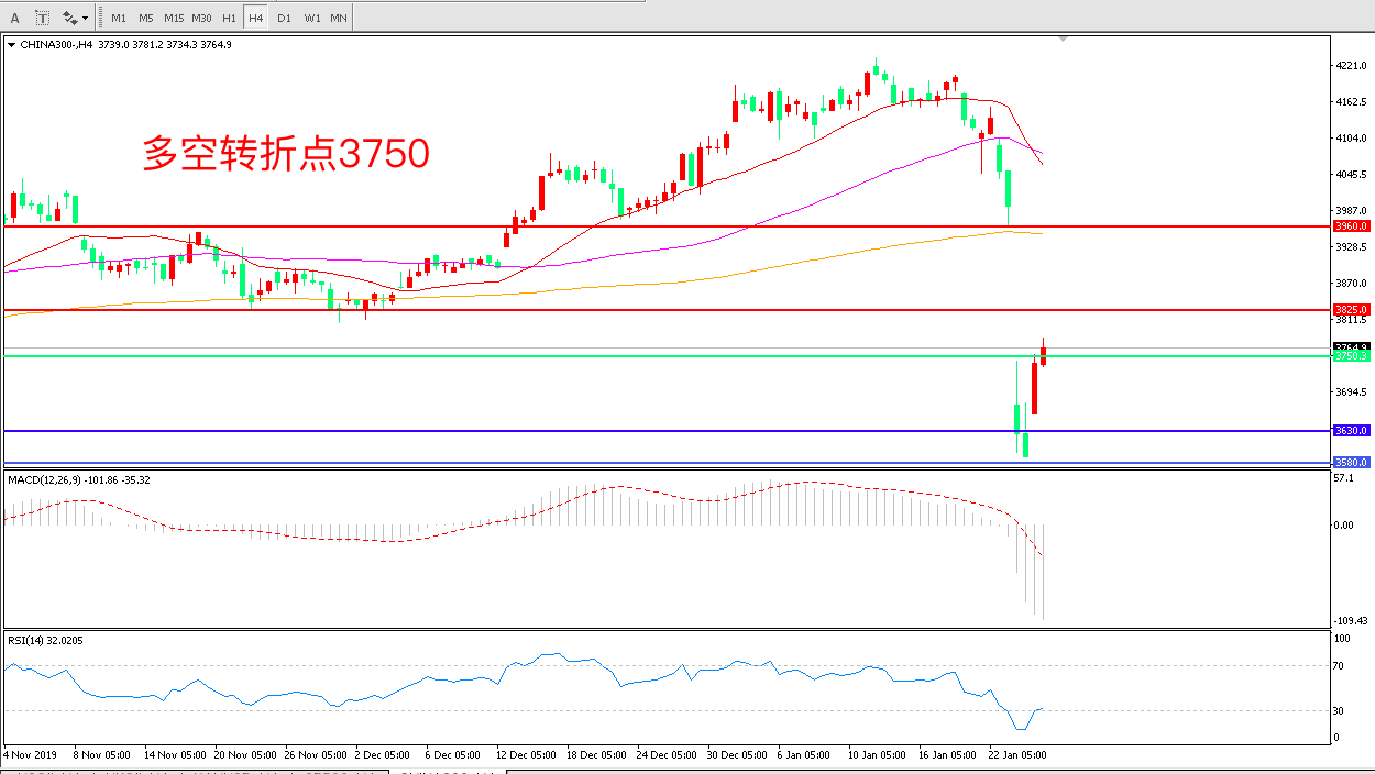 备选策略:在3750之下看跌,目标3630.00 3580.00