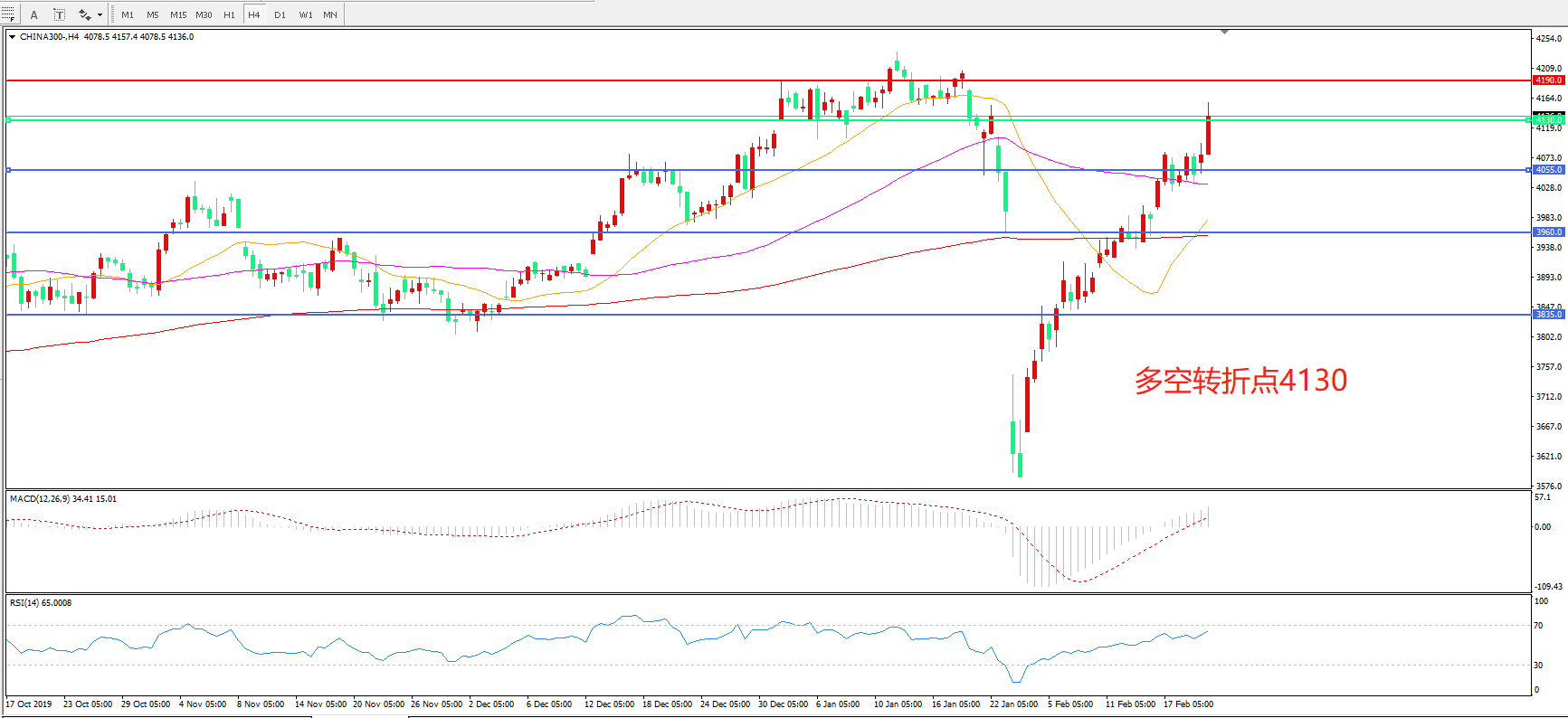 4小时图看,沪深300长阳连续拉升,整体走势偏强,短期均线拐头向上,MACD红柱增加,RSI指标向上,日内延续上行概率较大。