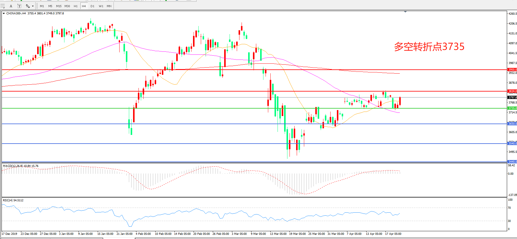 沪深300  CHINA 300   4小时图
