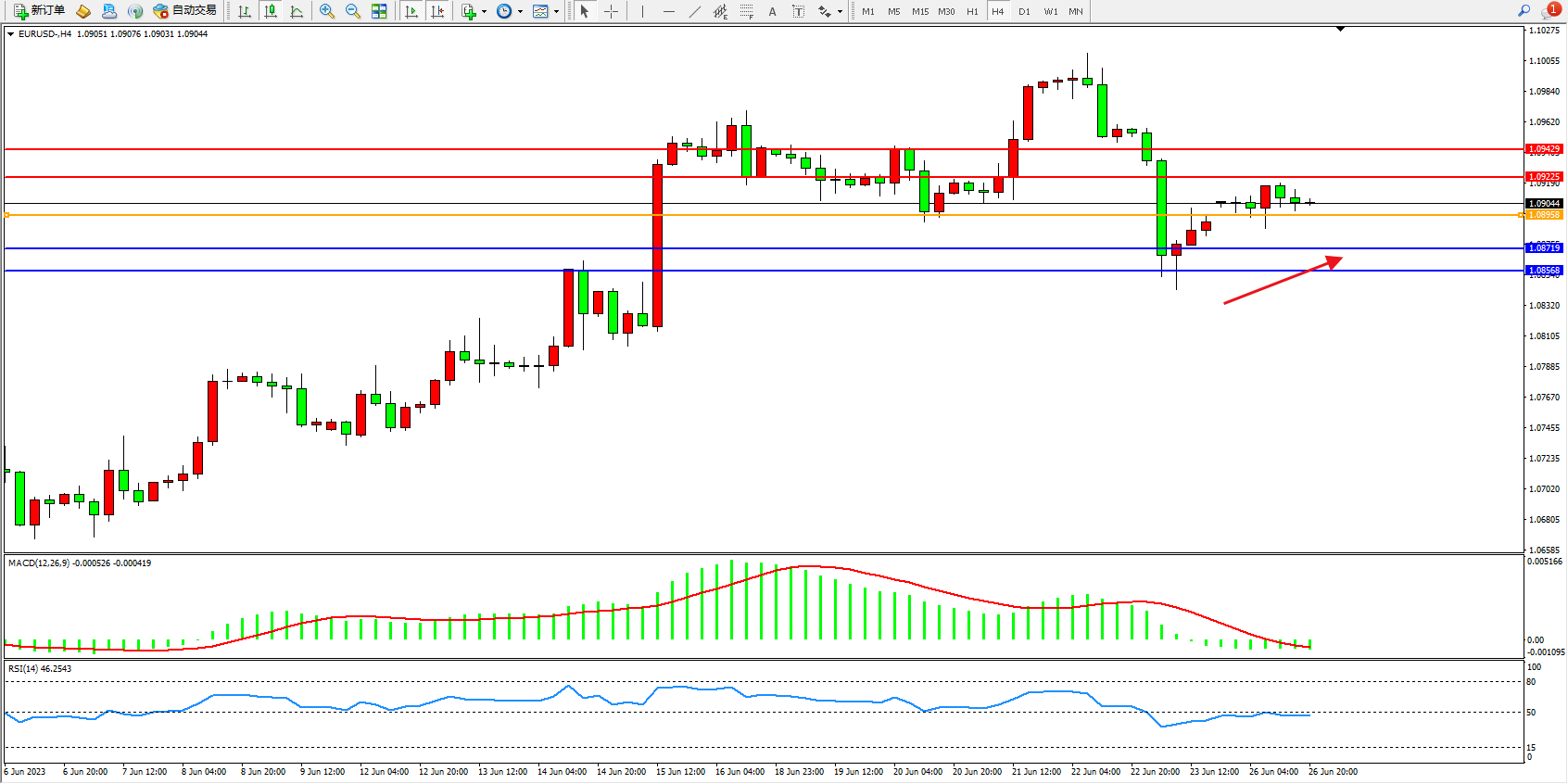 备选策略:1.08958下方看跌,目标1.08719 1.08568