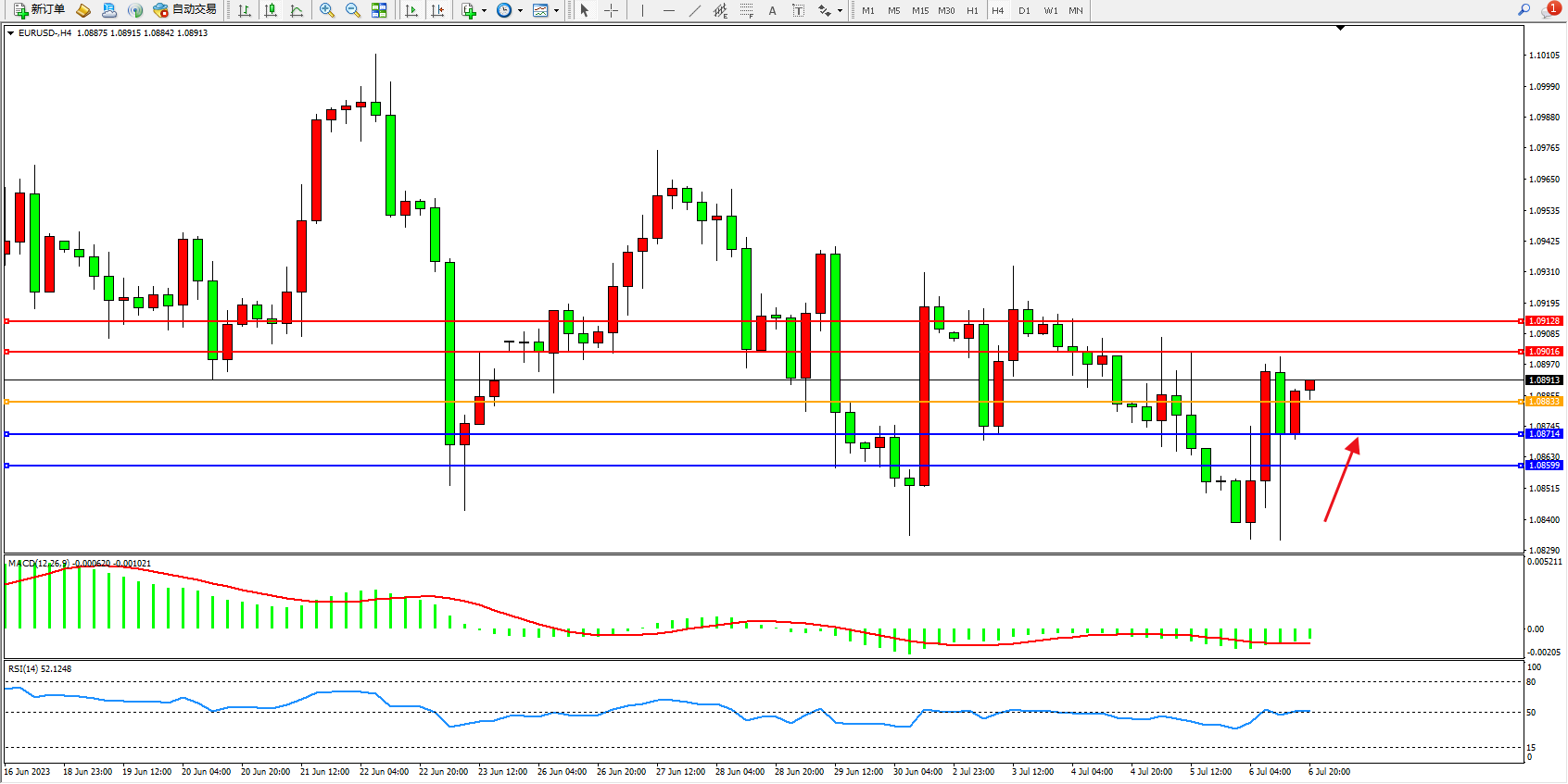 备选策略:1.08833下方看跌,目标1.08714  1.06599