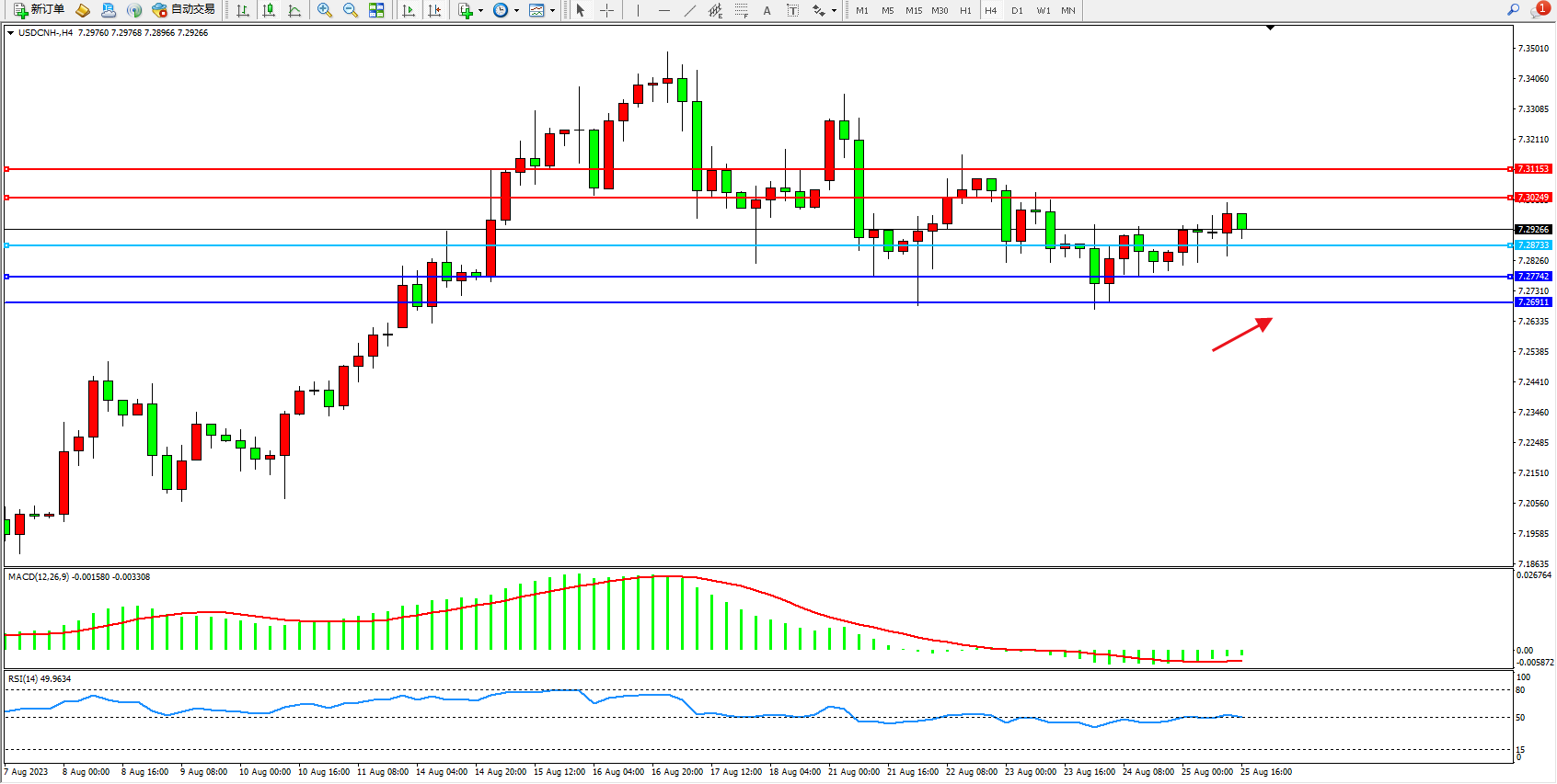 备选策略:7.28733下方看跌,目标7.27742  7.26911