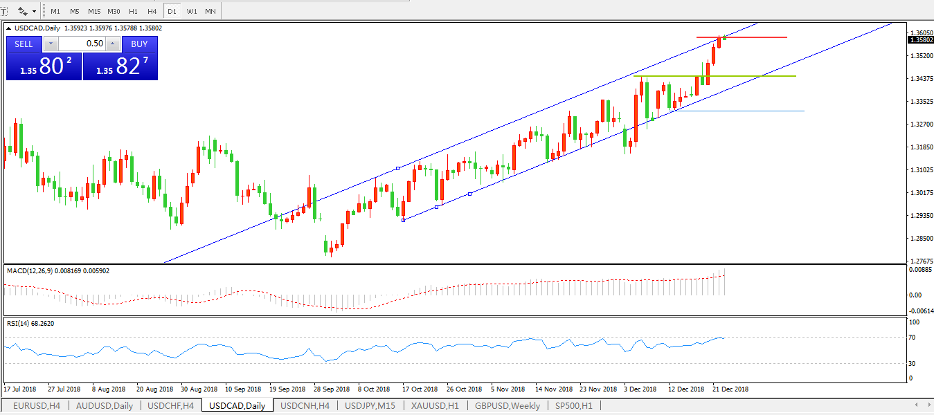交易策略: 1.3450上,看涨,目标价位1.3600,然后1.3715