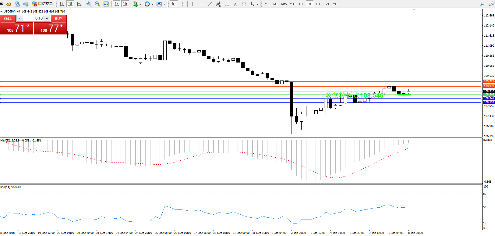 交易策略:108.546上方看涨,目标108.973、109.226