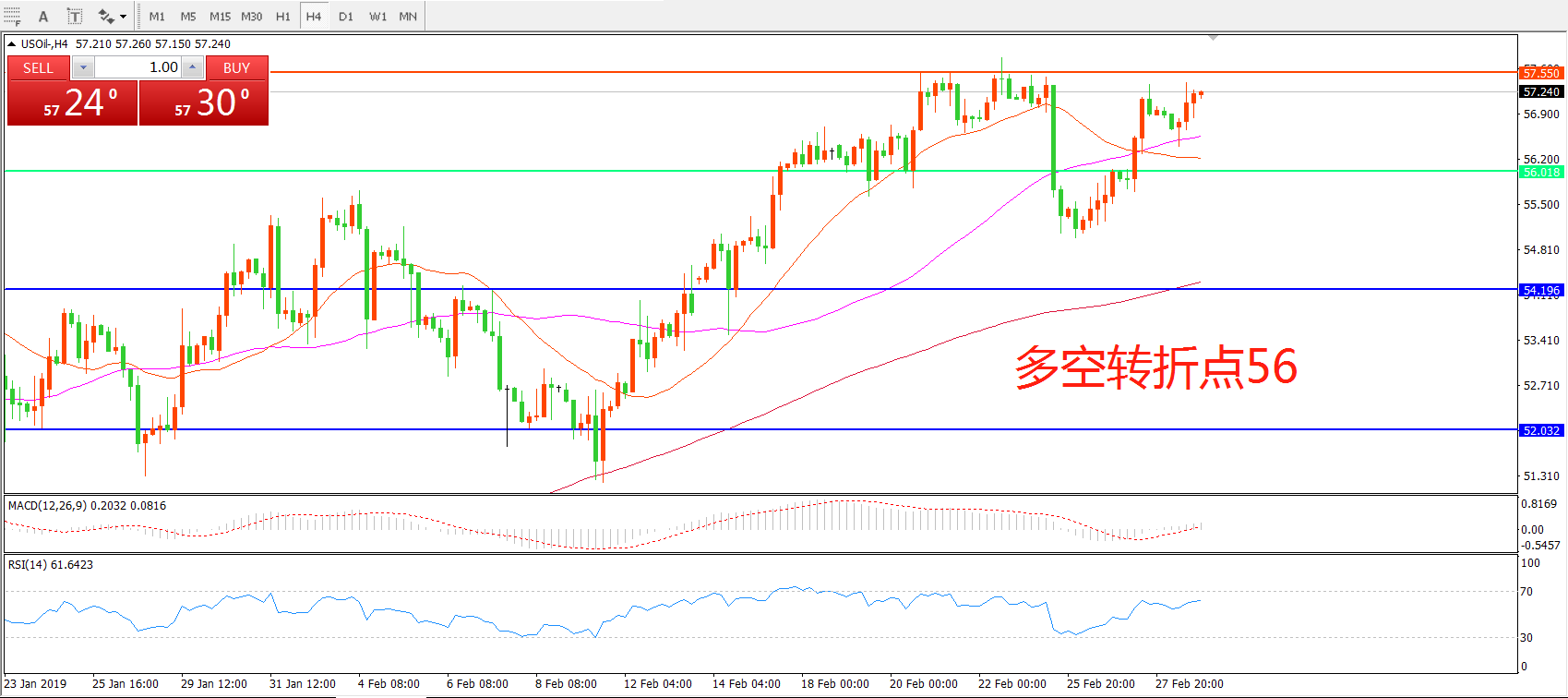 交易策略:在56.00  之上看涨,目标57.50    62.00