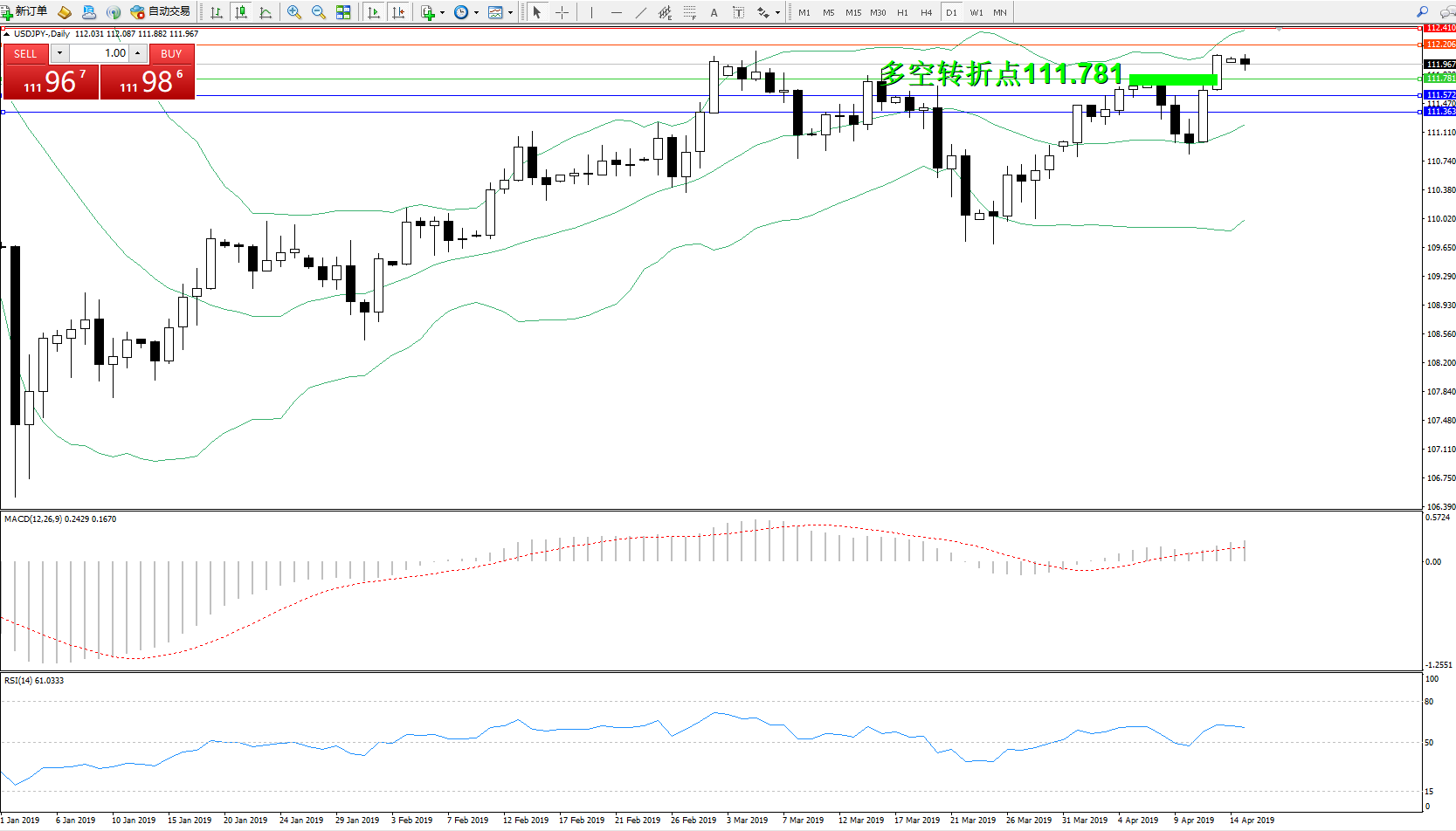 美元兑日元窄幅波动,盘中创下3月5日以来的高点112.1,因避险情绪大幅回落导致日元大幅回落,反而推动了美元兑日元走高。在4月末日本10天假期结束前,日元很容易走强。因为美国和欧洲出现新的贸易紧张形势以及IMF下调全球经济增长预估,使得日元周中受到投资者青睐。同时4月末至5月初日本将迎来前所未有的10天假日,迎接新天皇德仁继位,在此之前日元寻获进一步支撑。此外日企在保守运营业务,当前阶段很多企业自然会卖出美元在10日假期结束前,日元很容易走强。