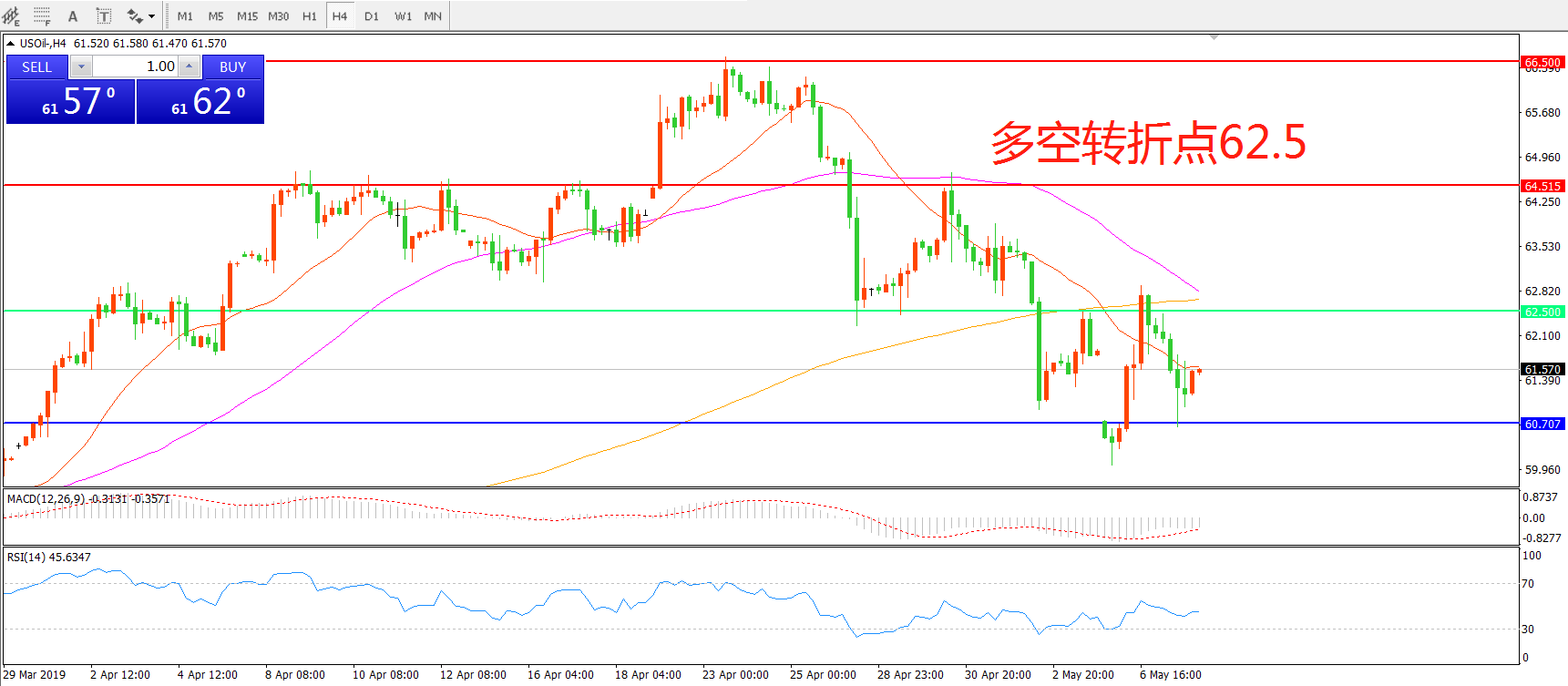交易策略: 在62.50  之下看跌,目标60.00    58.00