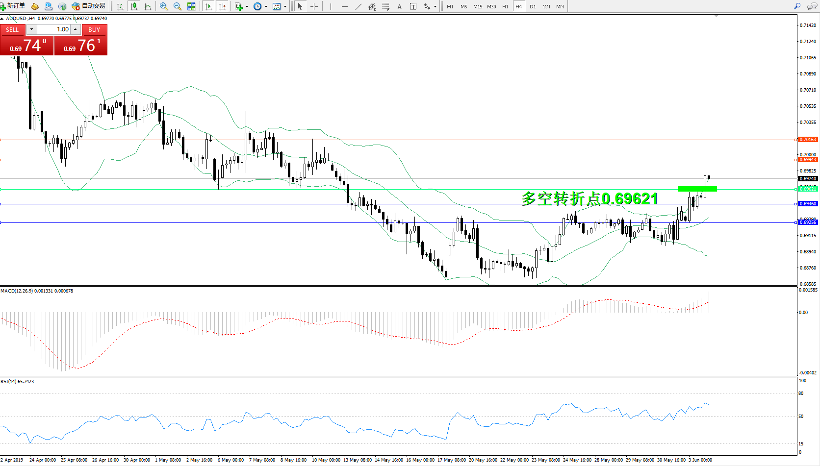 交易策略:0.69621上方看涨,目标0.699430.70163