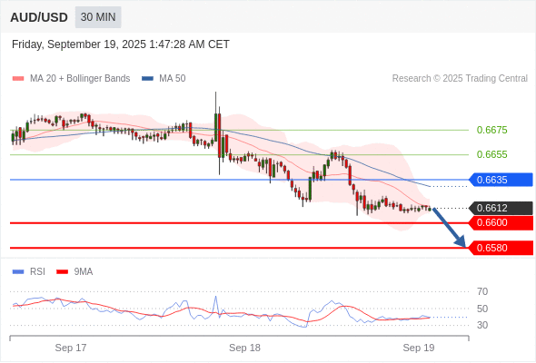 在 0.6635 之下,看跌,目标价位为 0.6600 ,然后为 0.6580 。