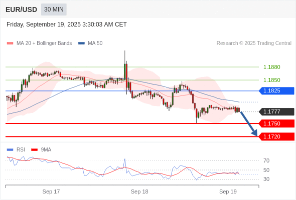 交易策略: 在 1.1825 之下,看跌,目标价位为 1.1750 ,然后为 1.1720 。
