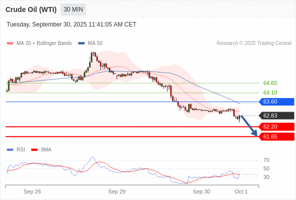 在 63.60 之下,看跌,目标价位为 62.20 ,然后为 61.65 。
