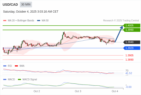 替代方案: 在1.3929以下,期待1.3905和1.3890。