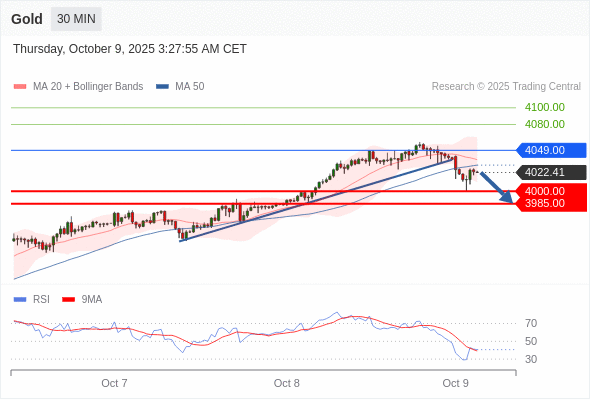 交易策略: 在 4049.00 之下,看跌,目标价位为 4000.00 ,然后为 3985.00 。