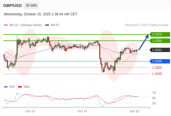 在 1.3285 之上,看涨,目标价位为 1.3350 ,然后为 1.3370 。