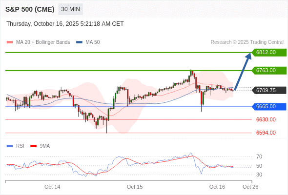 在 6665.00 之上,看涨,目标价位为 6763.00 ,然后为 6812.00 。