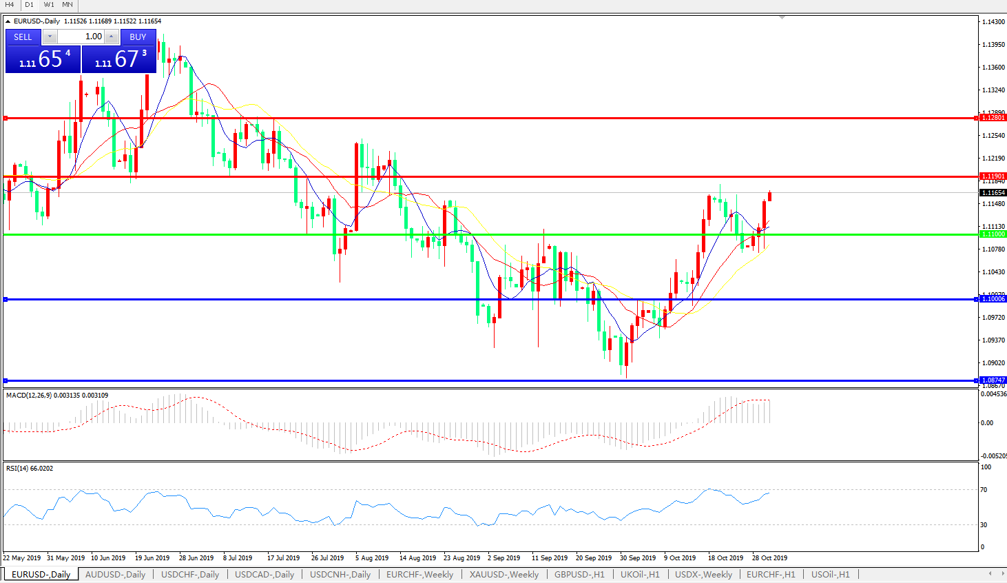 交易策略:1.1100上方看涨,目标1.1190、1.1280