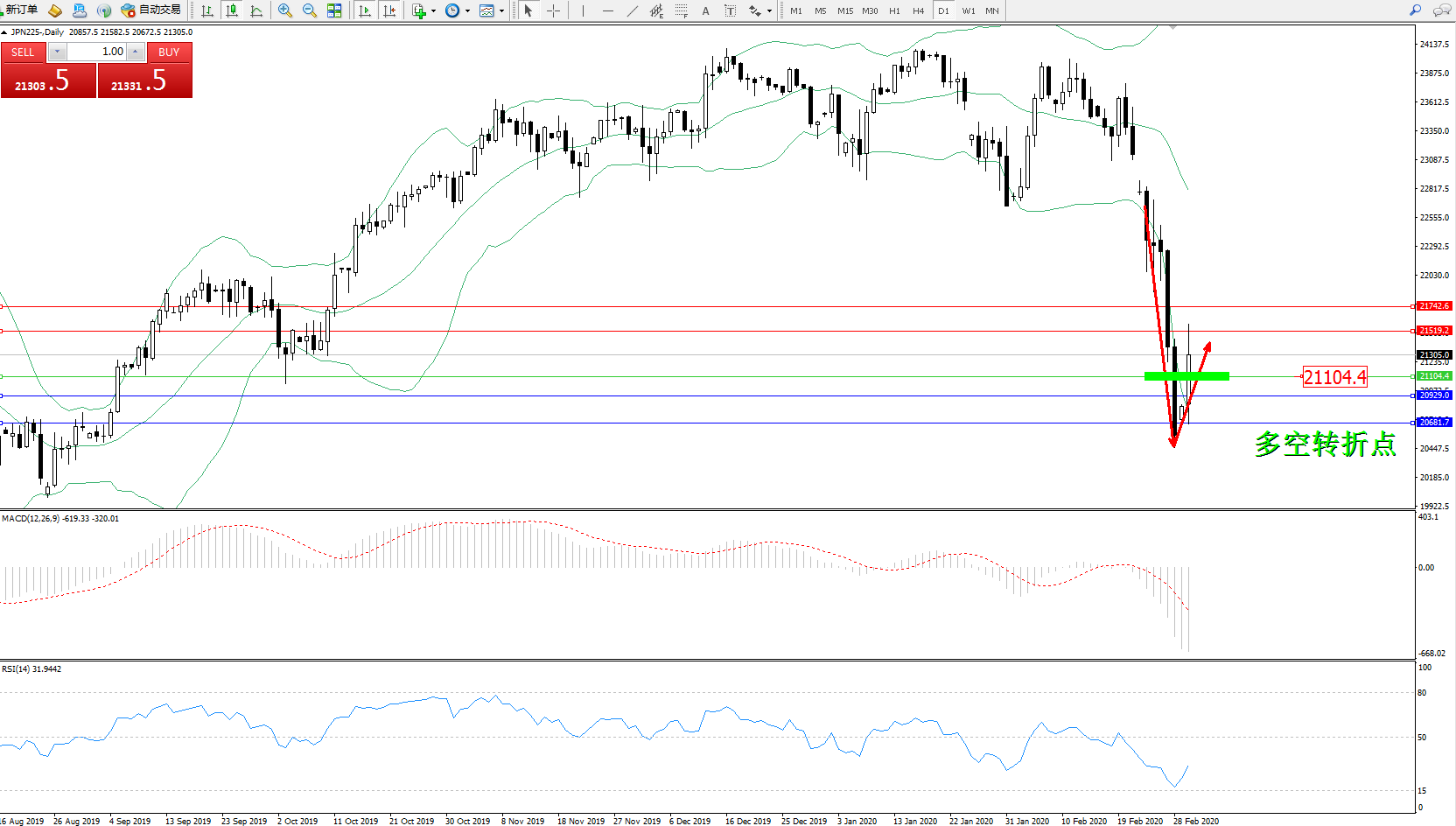 日经225指数3月2日(周一)收盘上涨208.04点,涨幅0.98%,报21351.00点。本2月制造业活动创近四年来最快萎缩速度,为日本制造业亮起警灯,受卫生风险影响。日本制造业放缓提供了迄今为止最清晰的证据,表明卫生风险对全球经济增长和企业造成破坏性影响。这可能使日本决策者提振经济增长的压力增强。日本首相安倍晋三2日表示,为了防止卫生风险的蔓延,降低对于经济的损害,日本将于3月10日左右宣布第二批应对策略。安倍对国会表示,政府将采取充分措施,其中包括启用2700亿日元(约合人民币175亿元)的预算储备用来帮助中小型企业应对资金不足问题。“我们将认真检测事态发展,根据需要毫不犹豫地采取措施”。