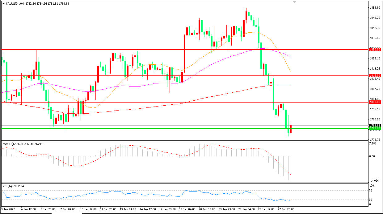 上周,多项美国数据出炉,美国第四季度GDP创下2020年第四季度以来新高,同时公布的美国第四季度核心PCE物价指数与预期基本一致,数据公布后,现货黄金延续下行趋势,收报1786.88美元/盎司。